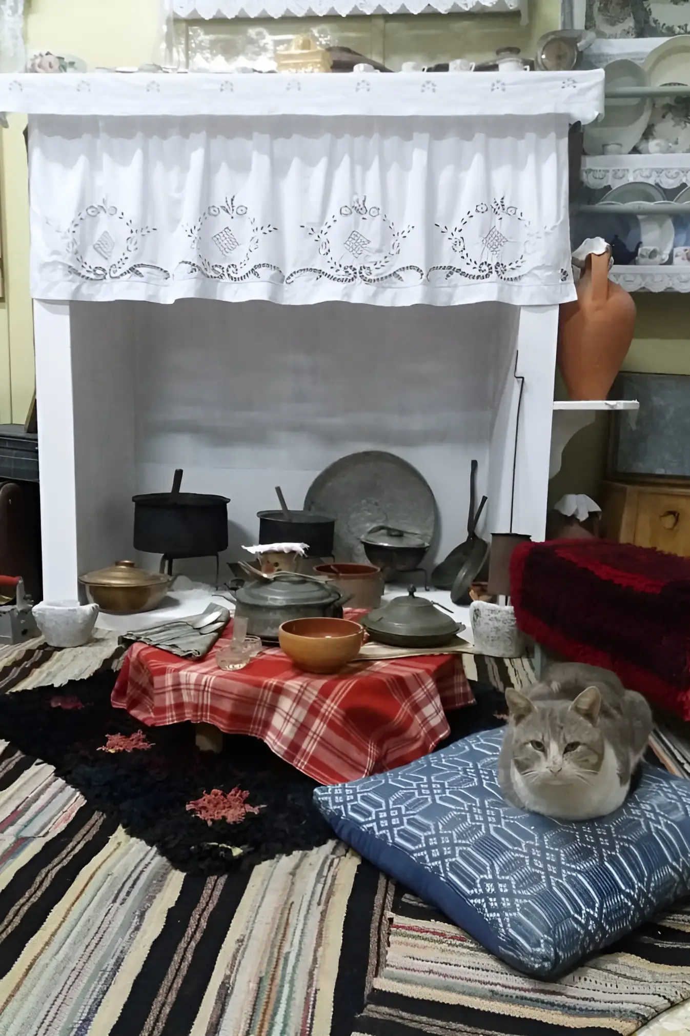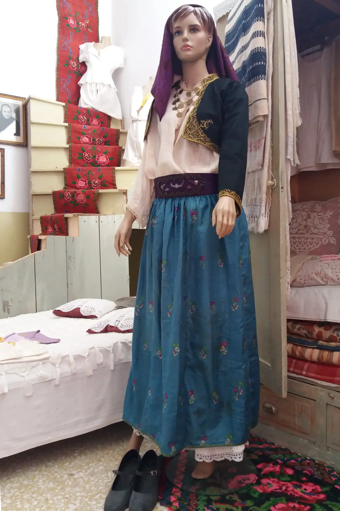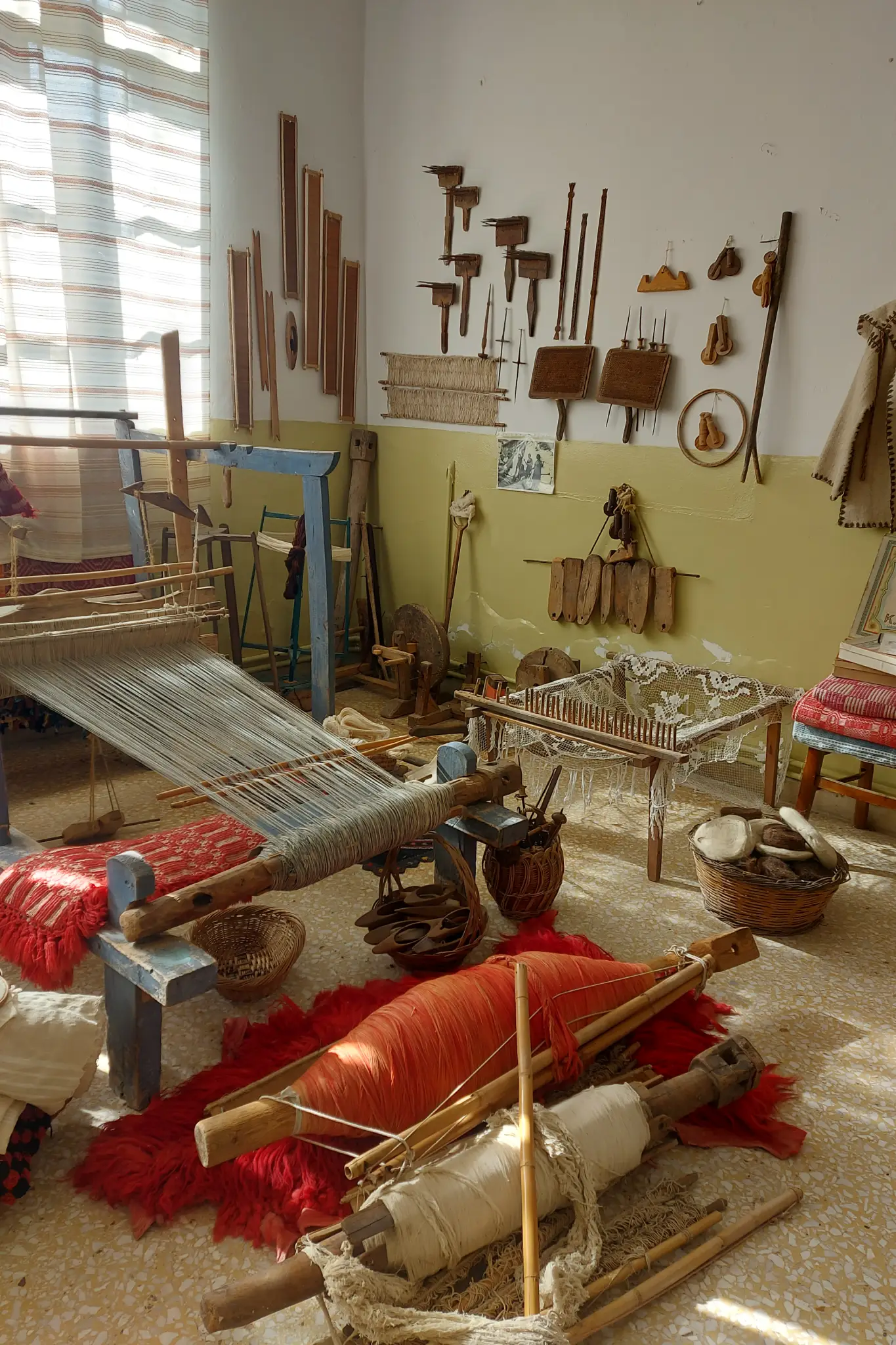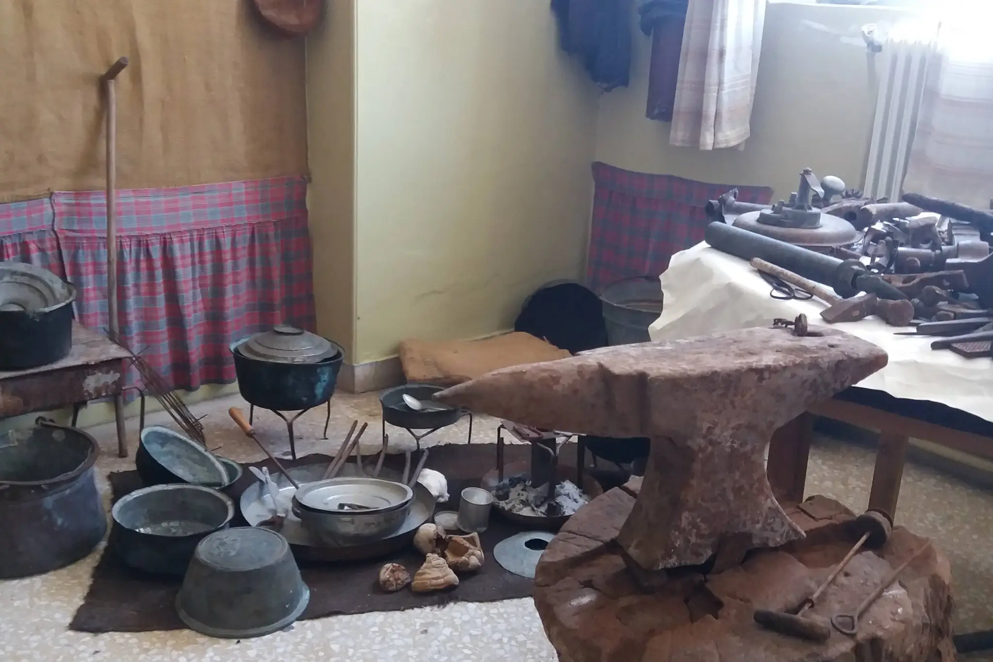 Σε έναν χώρο γεμάτο νοσταλγία και σεβασμό στην παράδοση, εκτίθενται παραδοσιακά εργαλεία που χρησιμοποιούνταν για την κτηνοτροφία, την καλλιέργεια ελιάς και την παραγωγή τυριού. Από ξύλινες σκάφες για το γάλα και σιδερένια δρεπάνια για τη σοδειά, από βουκέντρες κι άροτρα, από τον σοφρά και το ταγάρι μέχρι το χειροποίητο μεταξωτό νυφικό και την στολή του ήρωα φαντάρου στο Αλβανικό μέτωπο, κάθε αντικείμενο είναι μια ζωντανή μαρτυρία της καθημερινότητας.